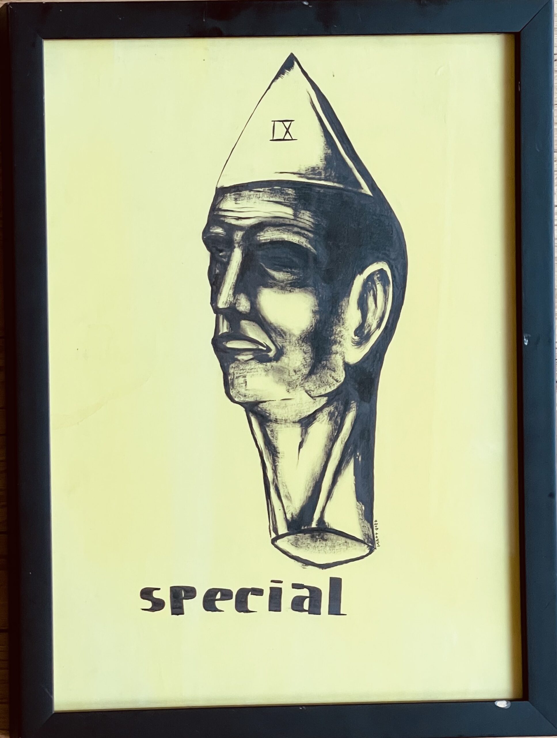 Visual Description: entitled SPECIAL with mans head with cap on with roman numeral 9 on yellow paper.