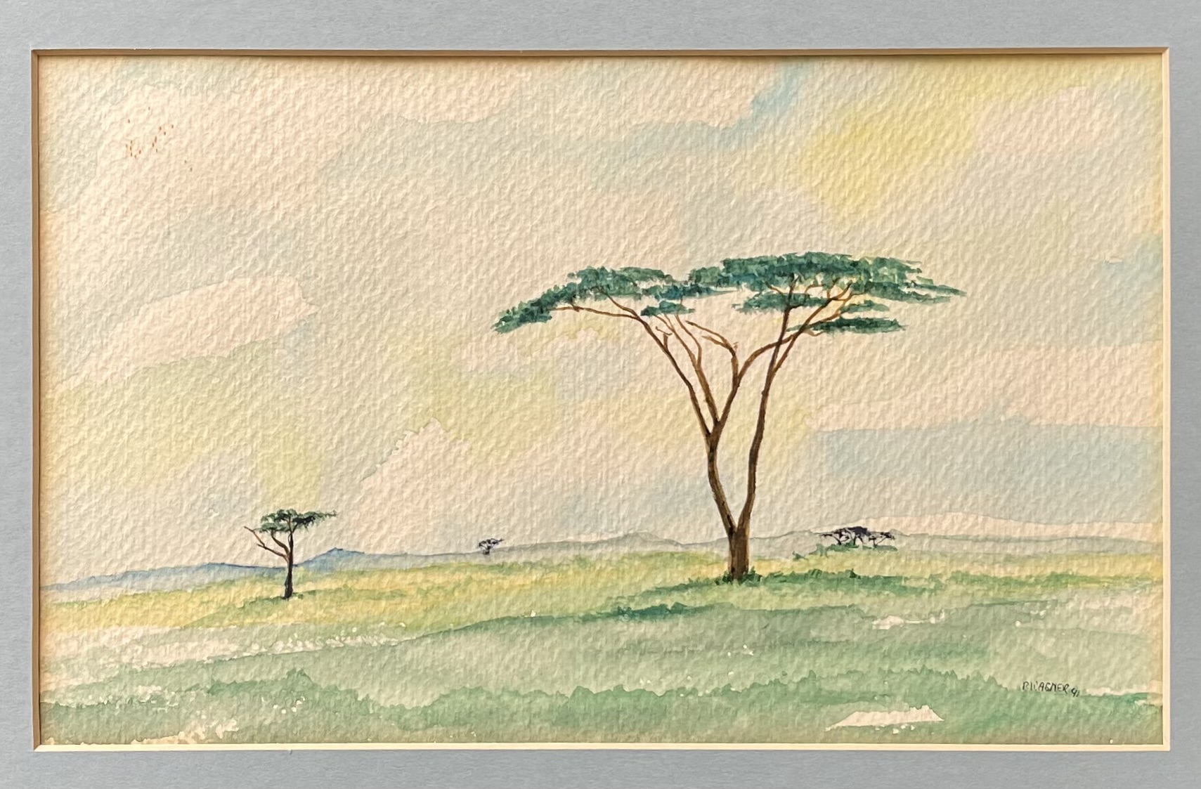10.25W x 6.25 signed lower right P. Wagner 91 on verso: Watercolor Phyllis Wagner 1991The Sarengeti Phyllis Wagner spent many years in Africa and currently resides in Springfield, MO
